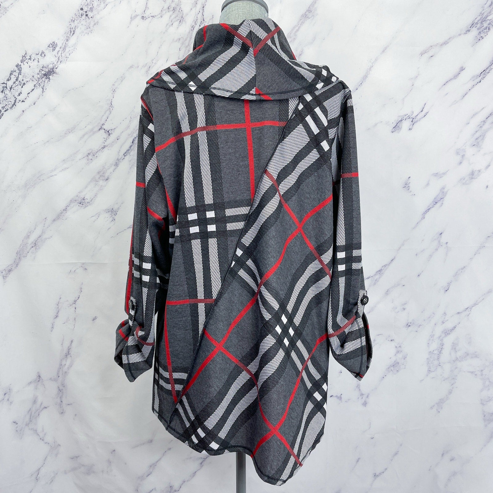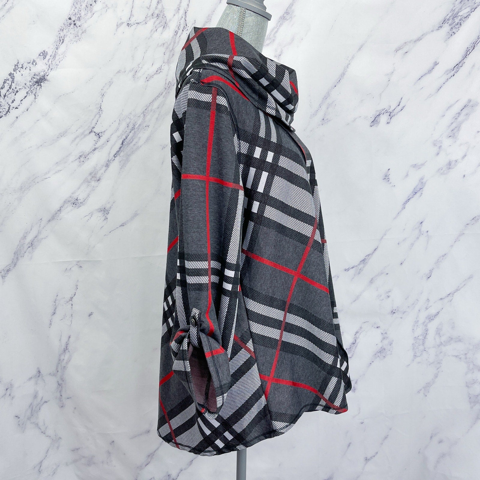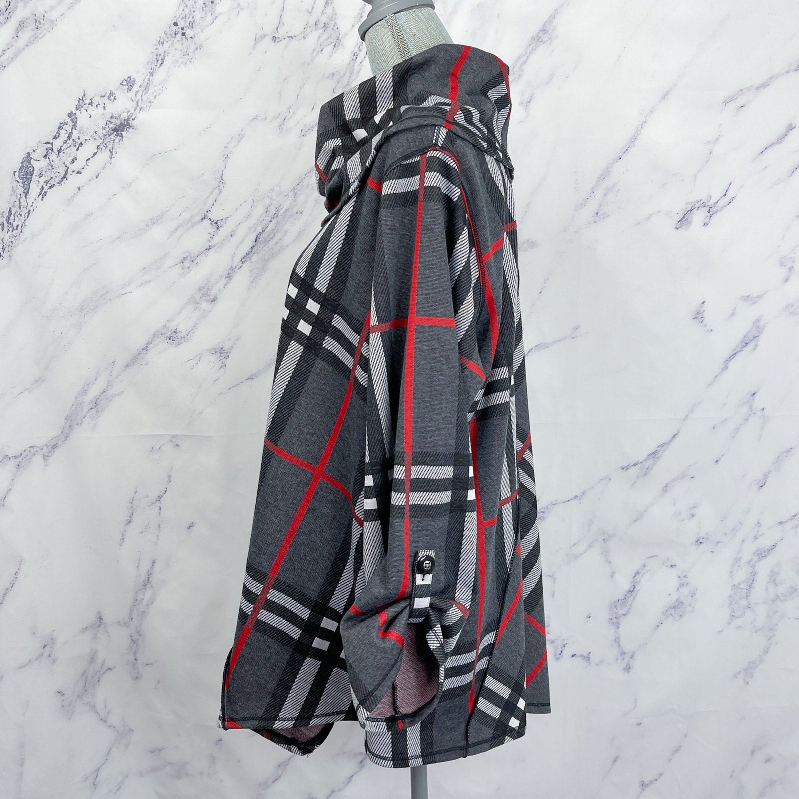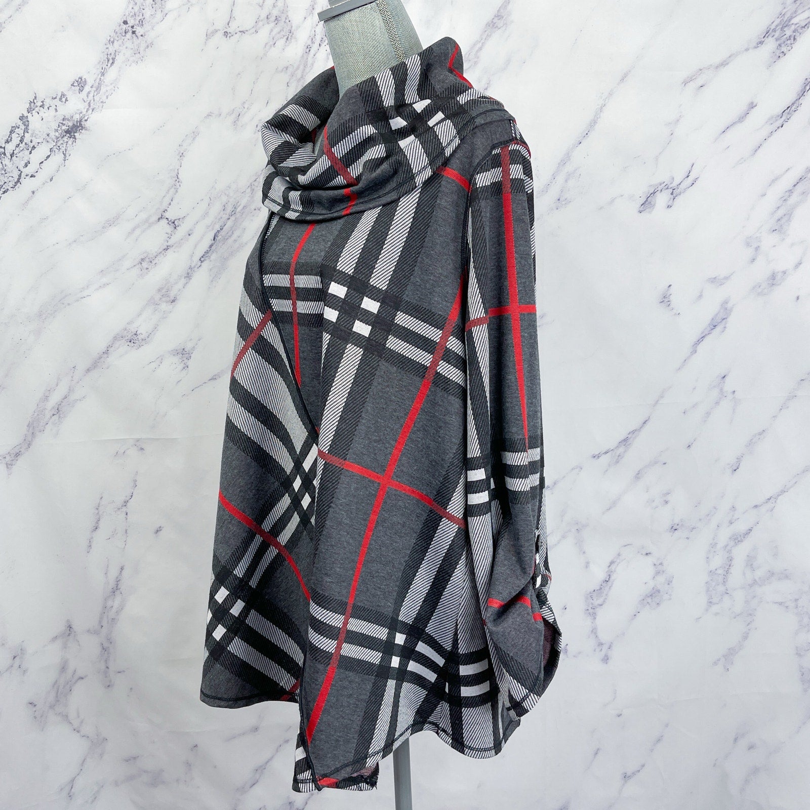 Ali Miles | Plaid Print Cowl Neckline 3/4 Sleeve Poncho | 1X