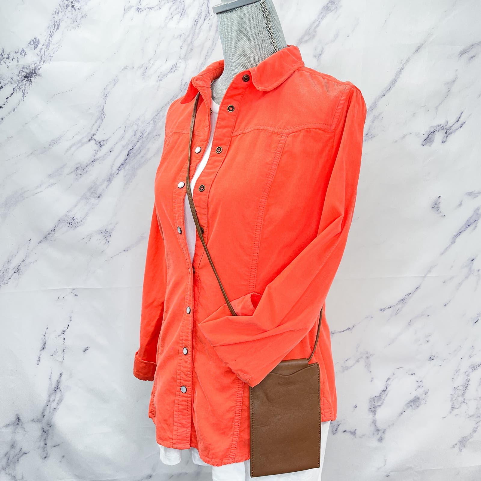 Anthropologie • Holding Horses | Orange Pinwale Corduroy Snap Front Shirt | 2