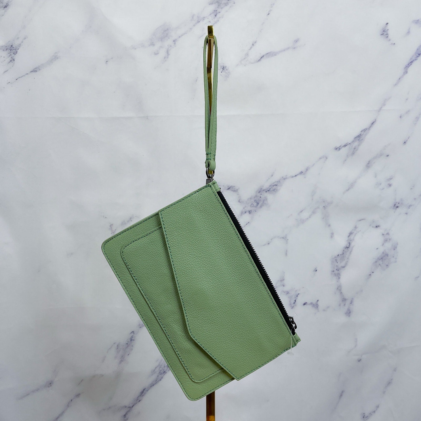 Keywords: Botkier, wristlet, leather, pebble leather, minimalist