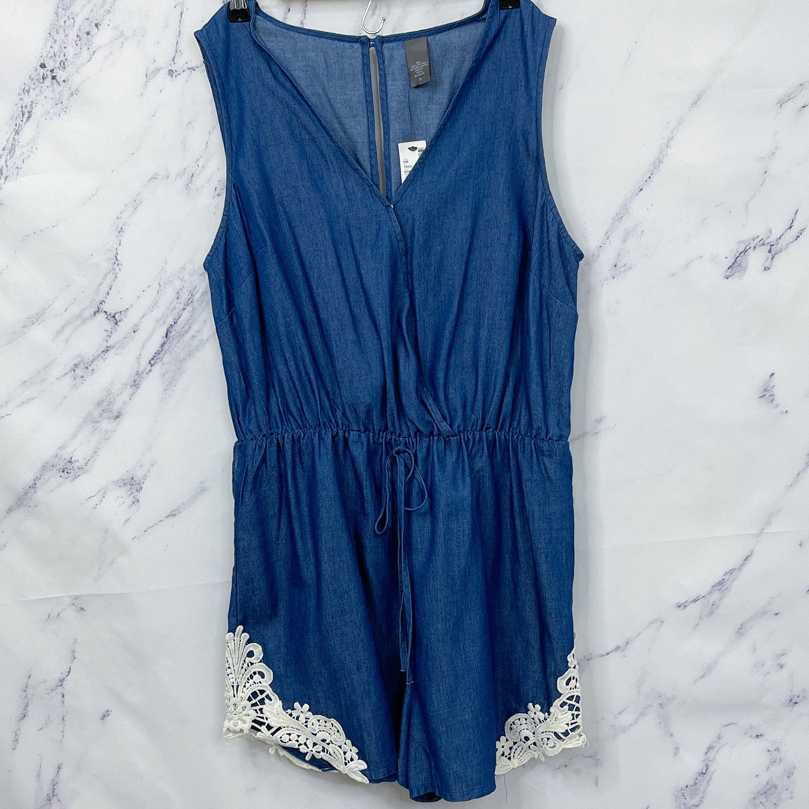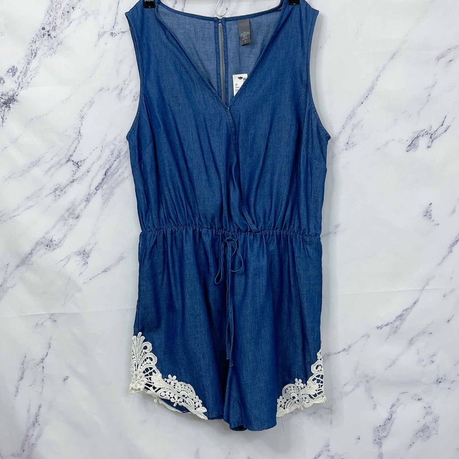 Boutique Chambray Romper with Crochet Detail | 1X