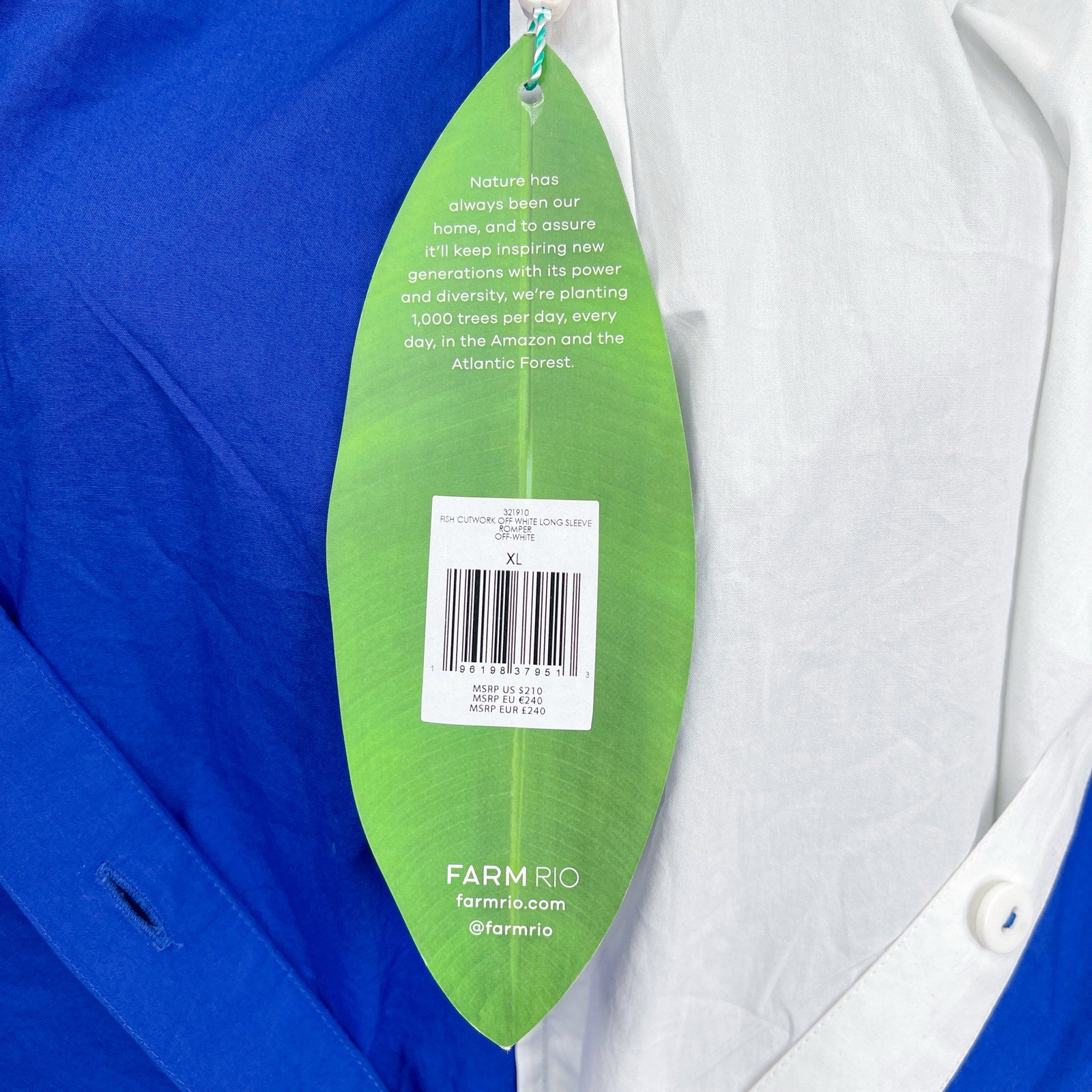 Farm Rio | Off-White Fish Cutwork Long Sleeve Romper | XL