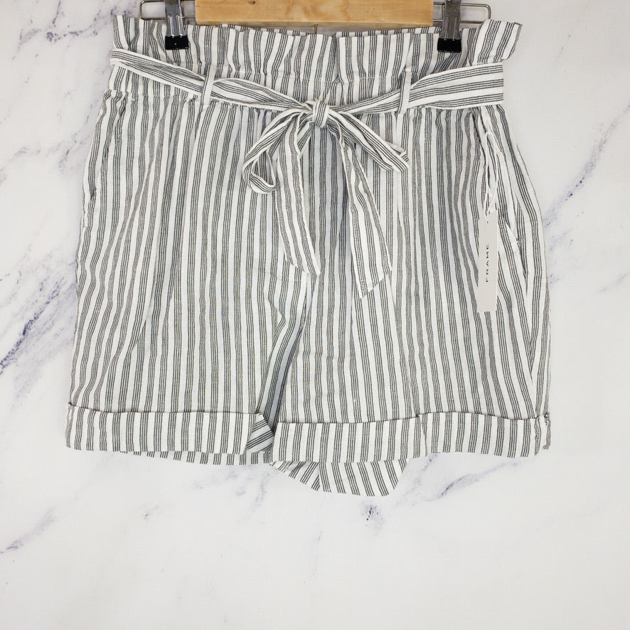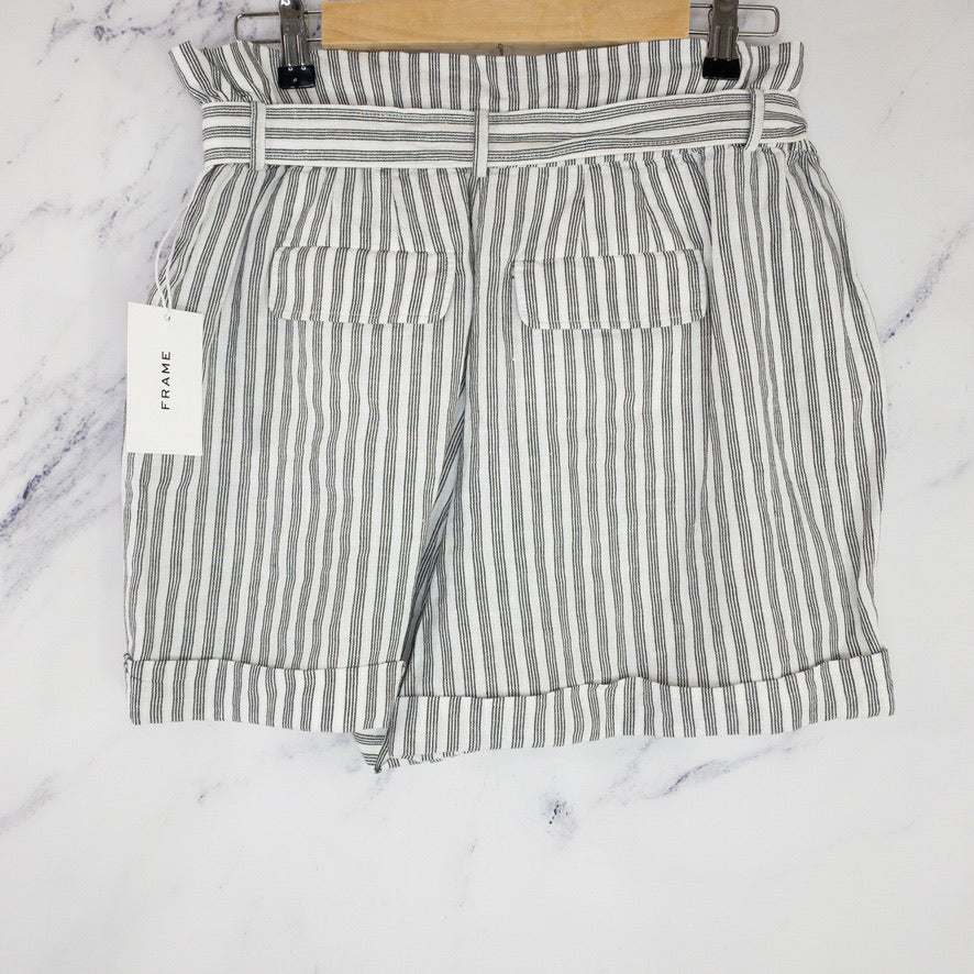 Frame | Striped Linen Blend Paperbag Shorts | Black/White | Size M
