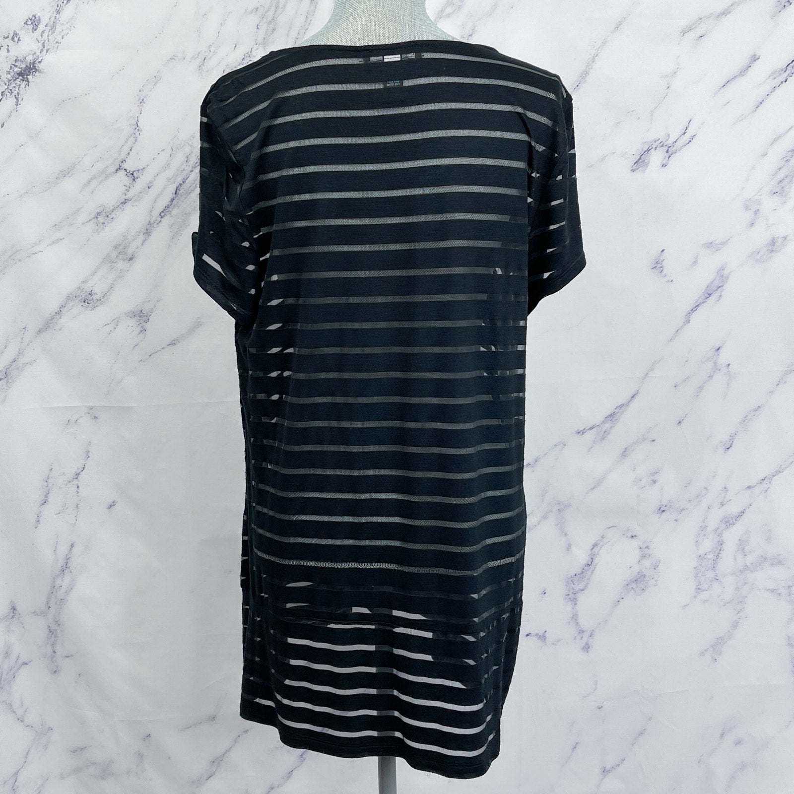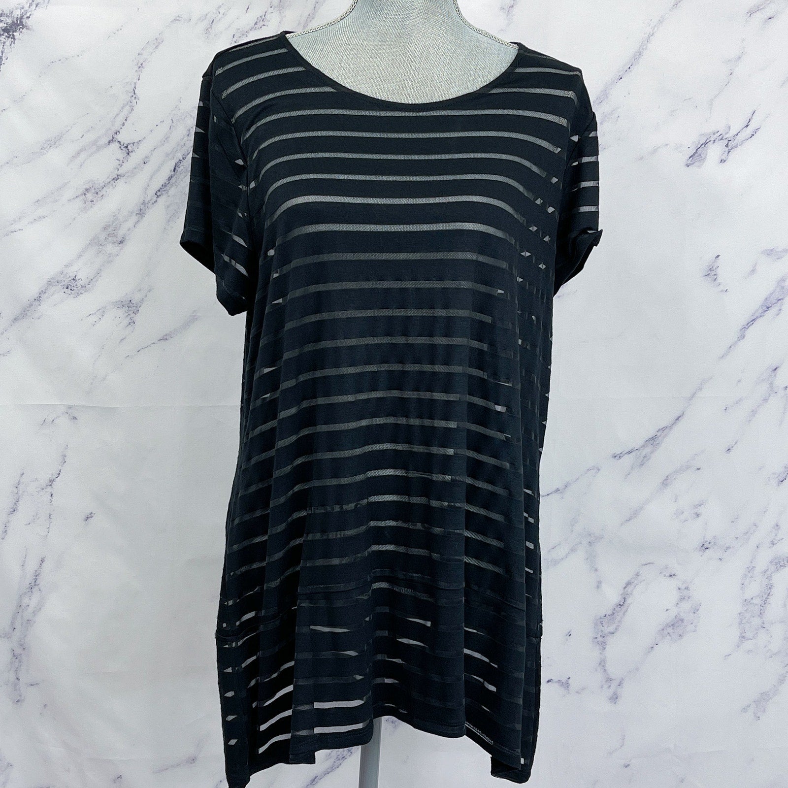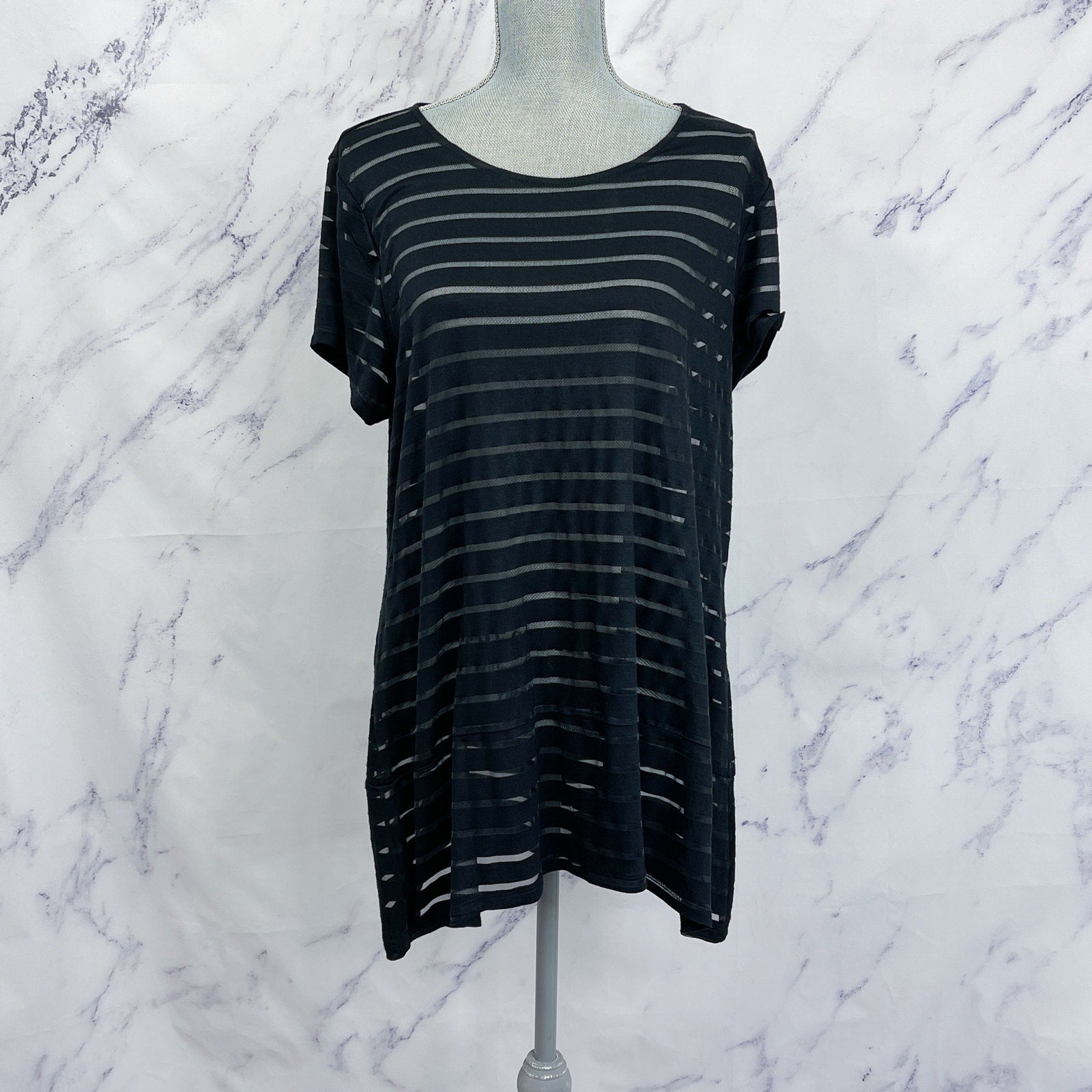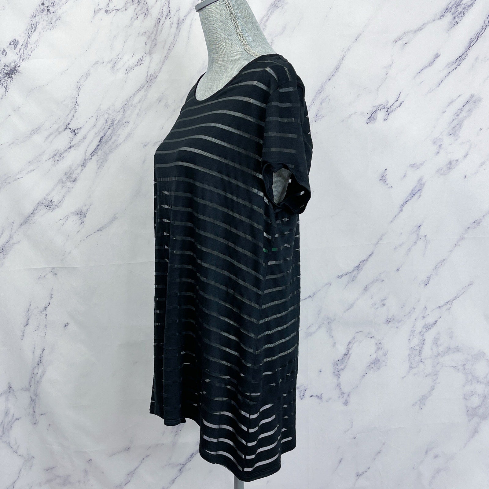 Keywords: T-shirt, Black T-Shirt, Striped Shirt, Striped Sheer T-Shirt