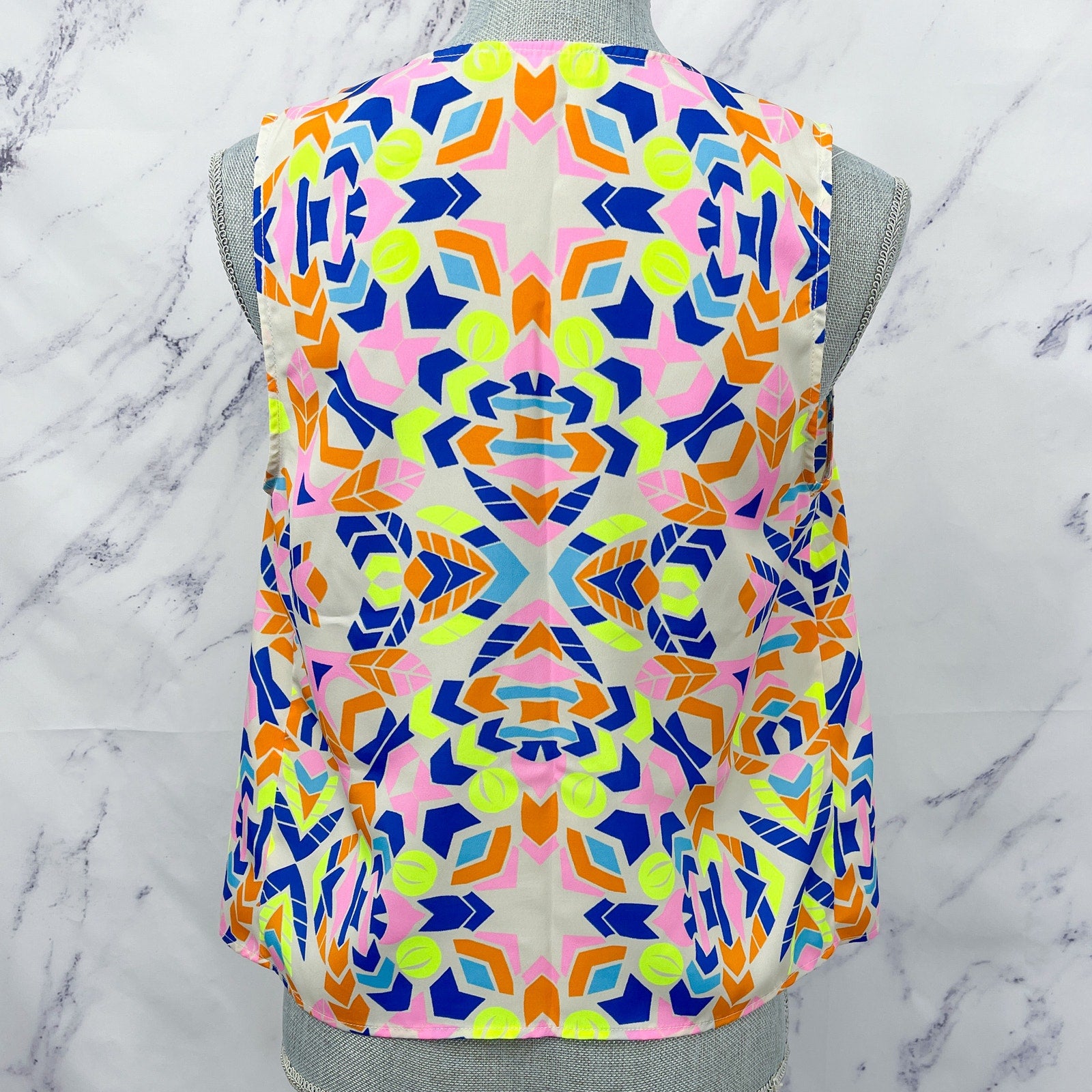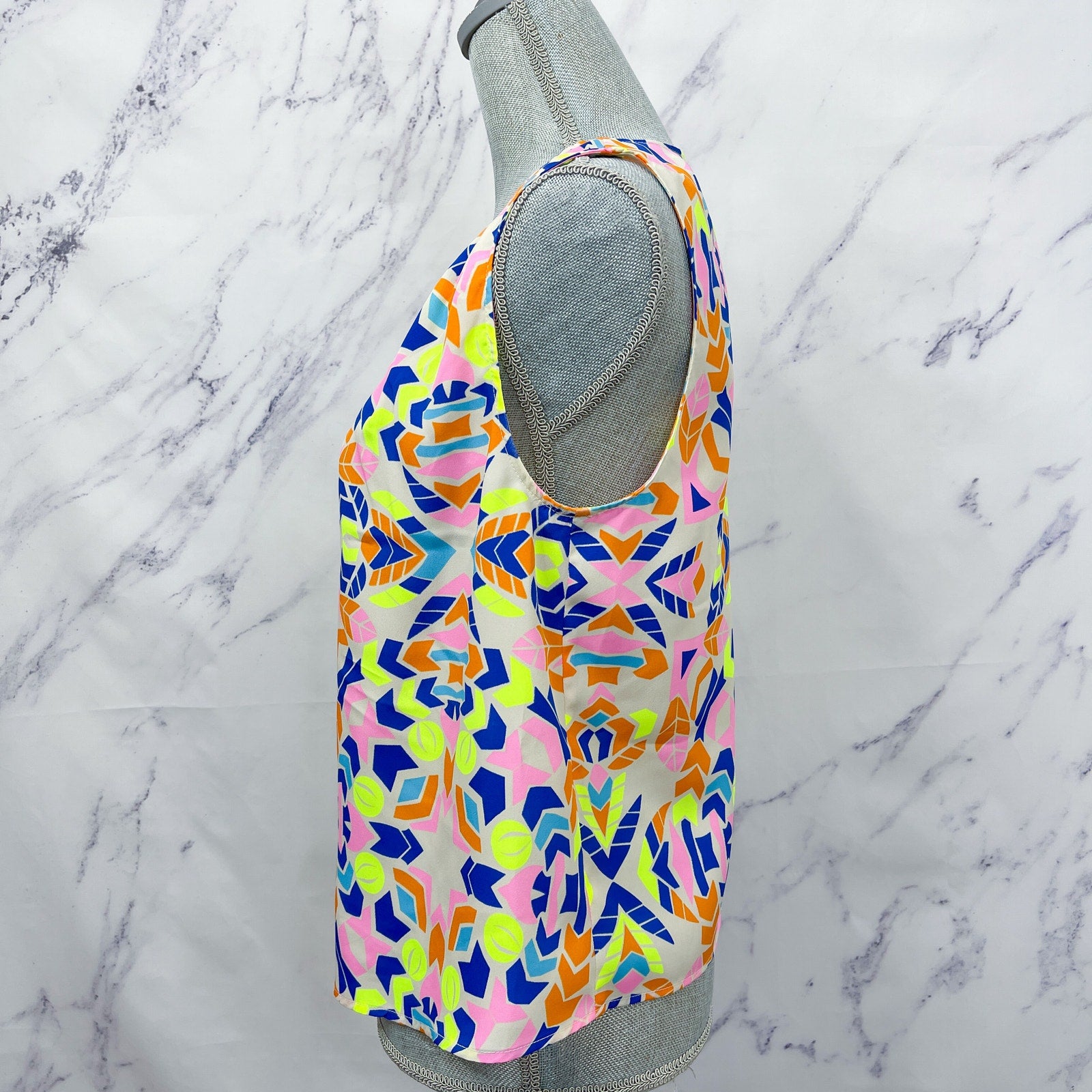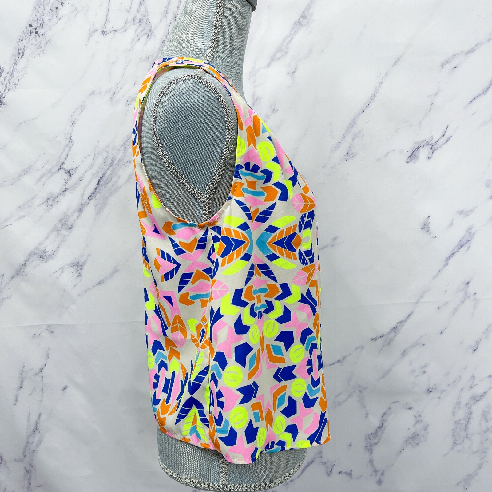 Keywords: Geo Print Top, Sleeveless Top, Colorful, Casual, Summer, Vacation, Resortwear