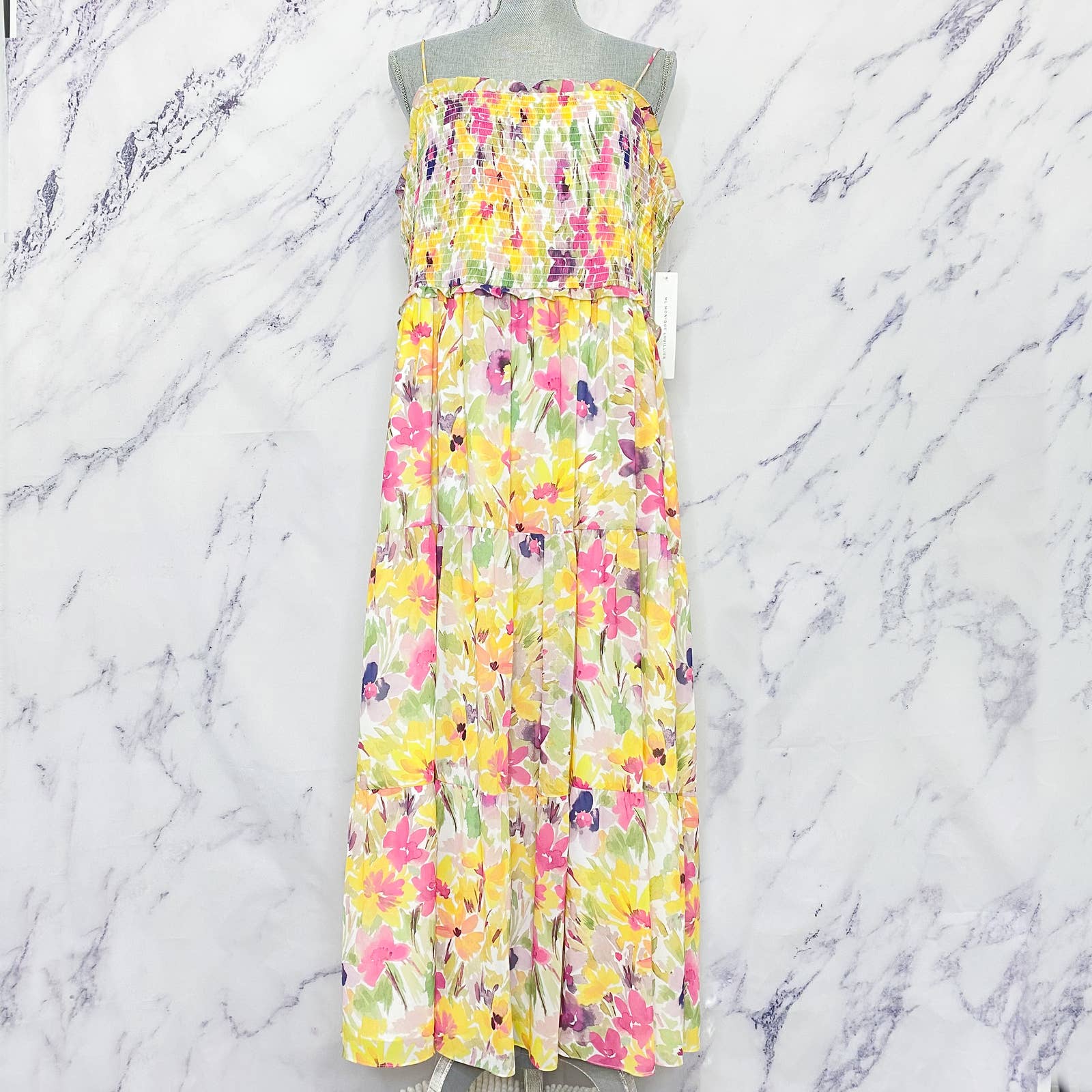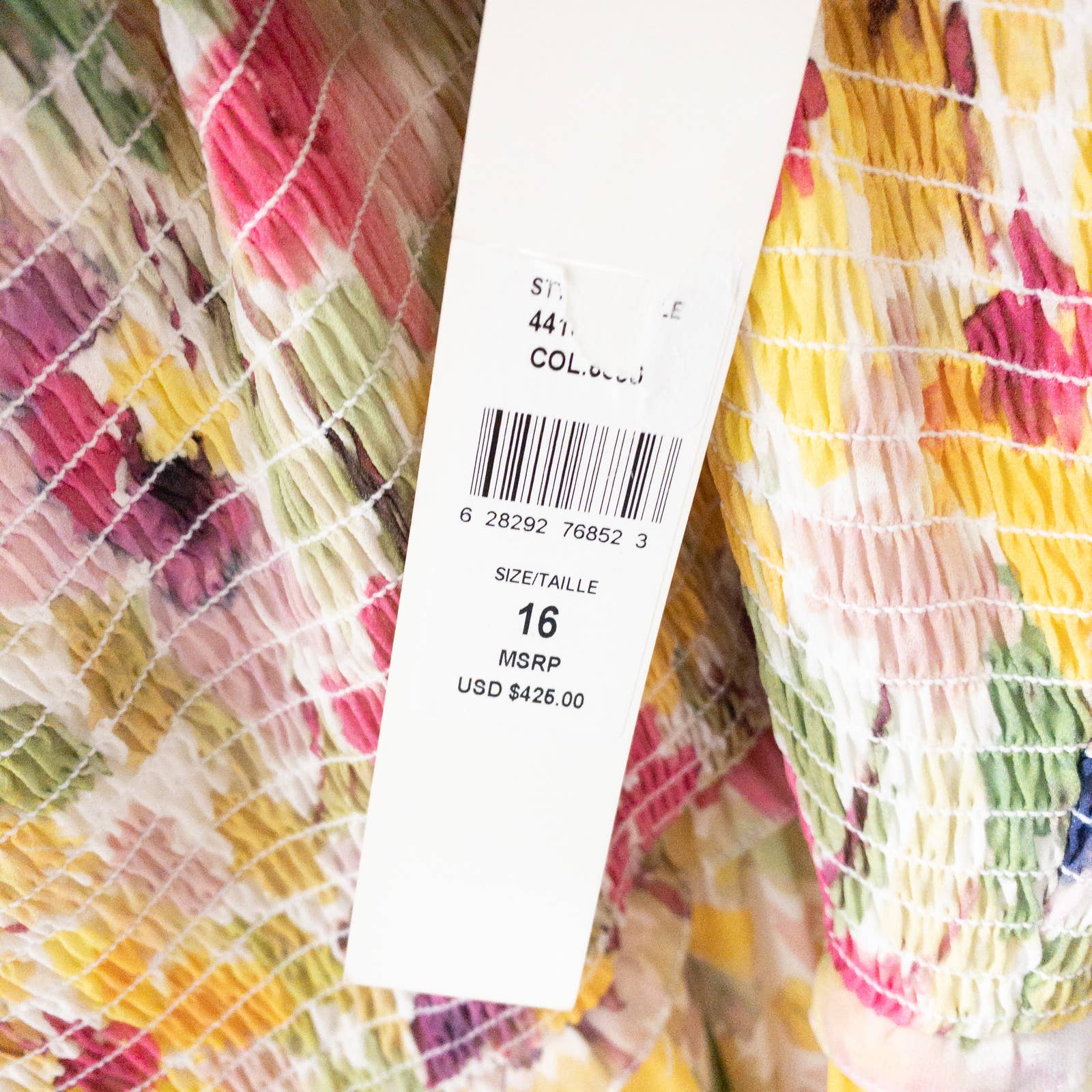 ML Monique Lhuillier | Blooming Field Smocked Midi Dress | Sz 16