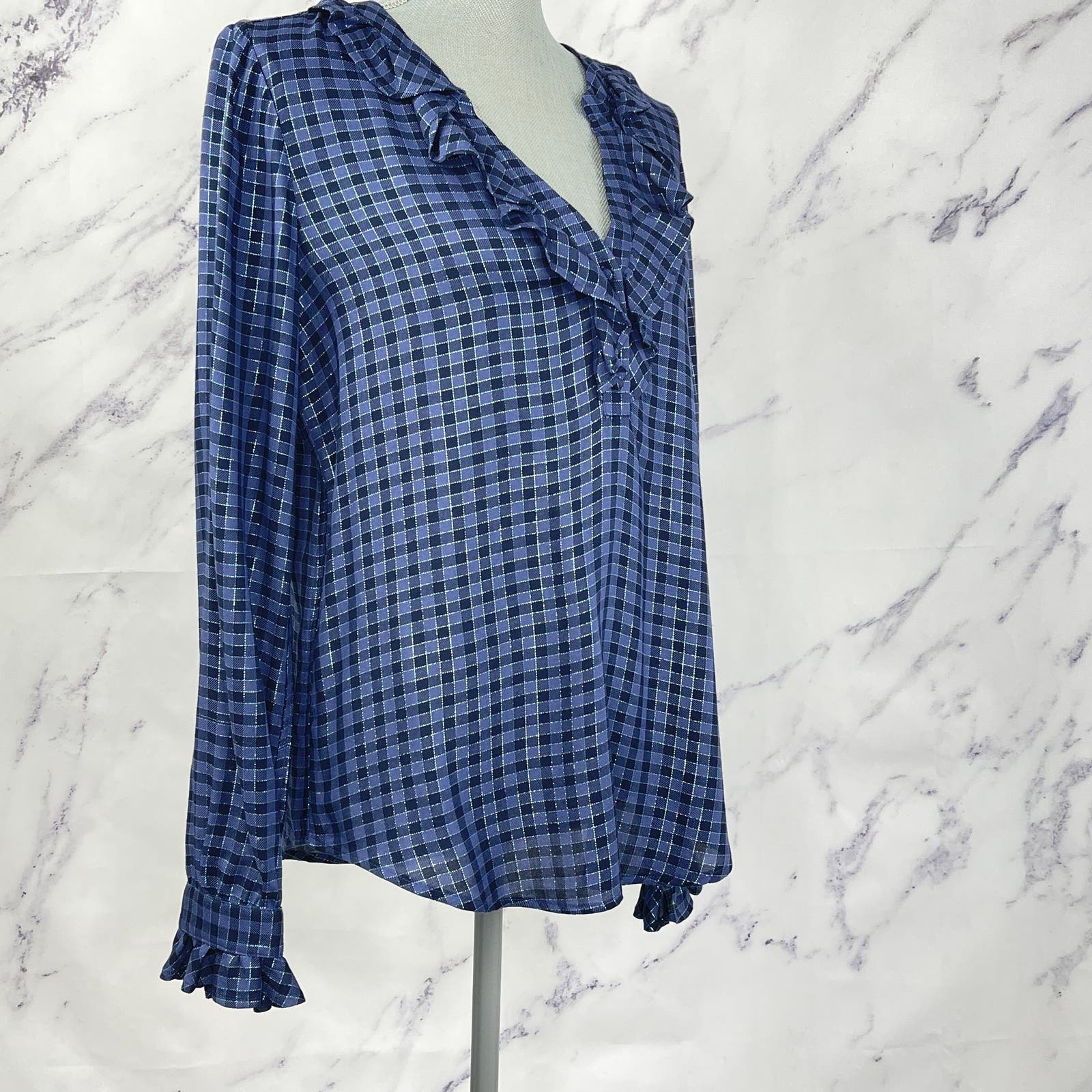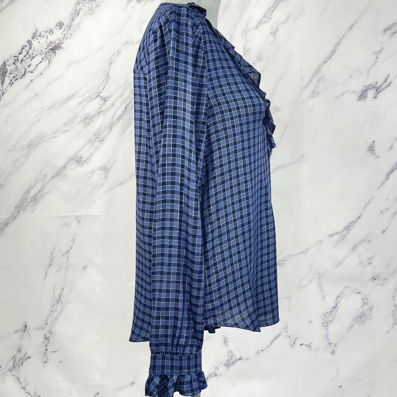 Plaid, metallic, Button-down, casual, office, workwear, ruffle