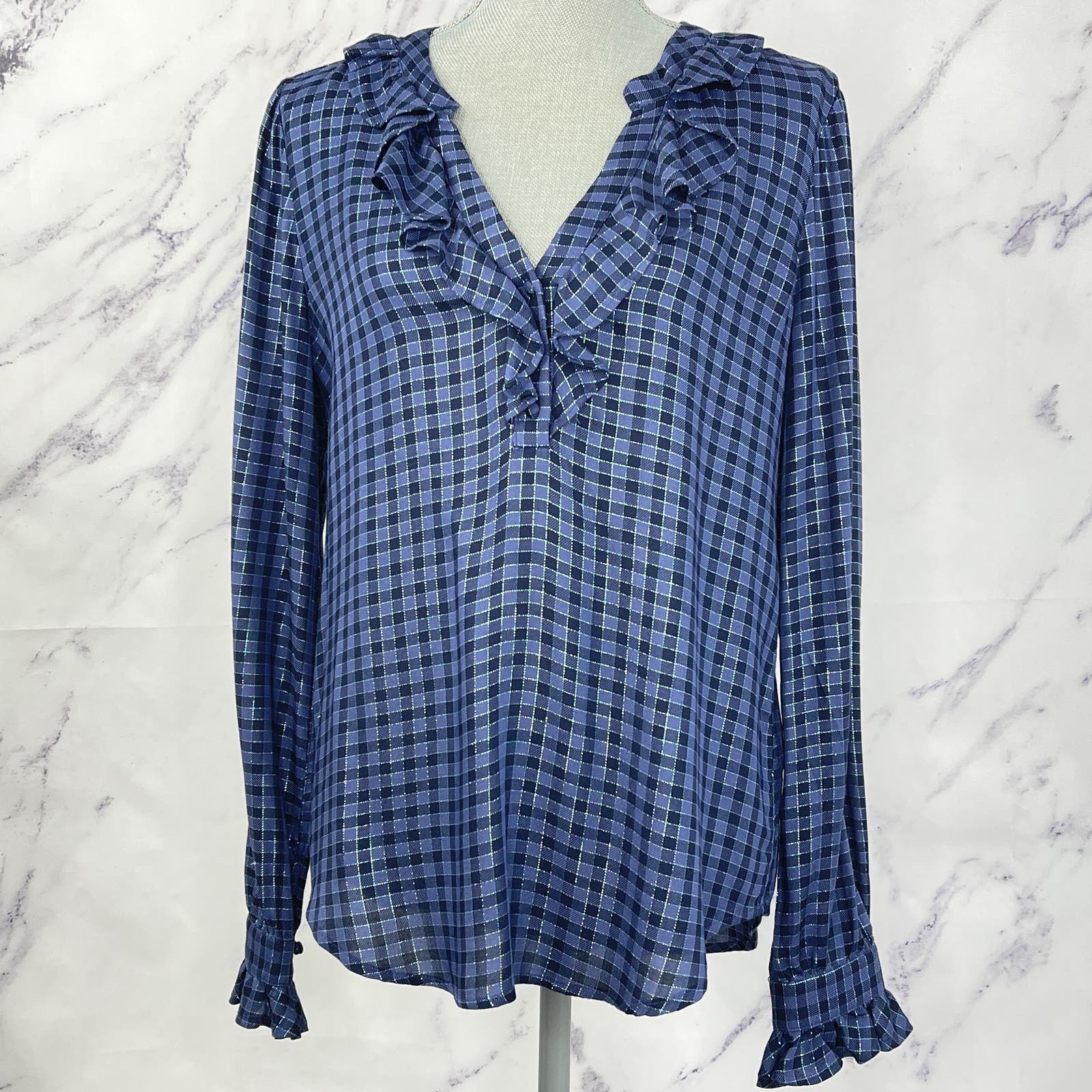 Paige | Amalfi Plaid Blouse in Crown Blue | M