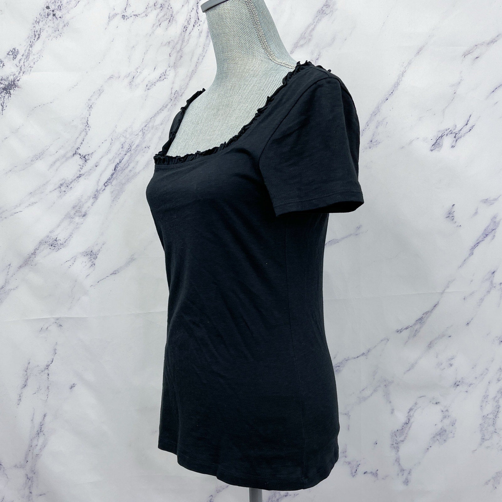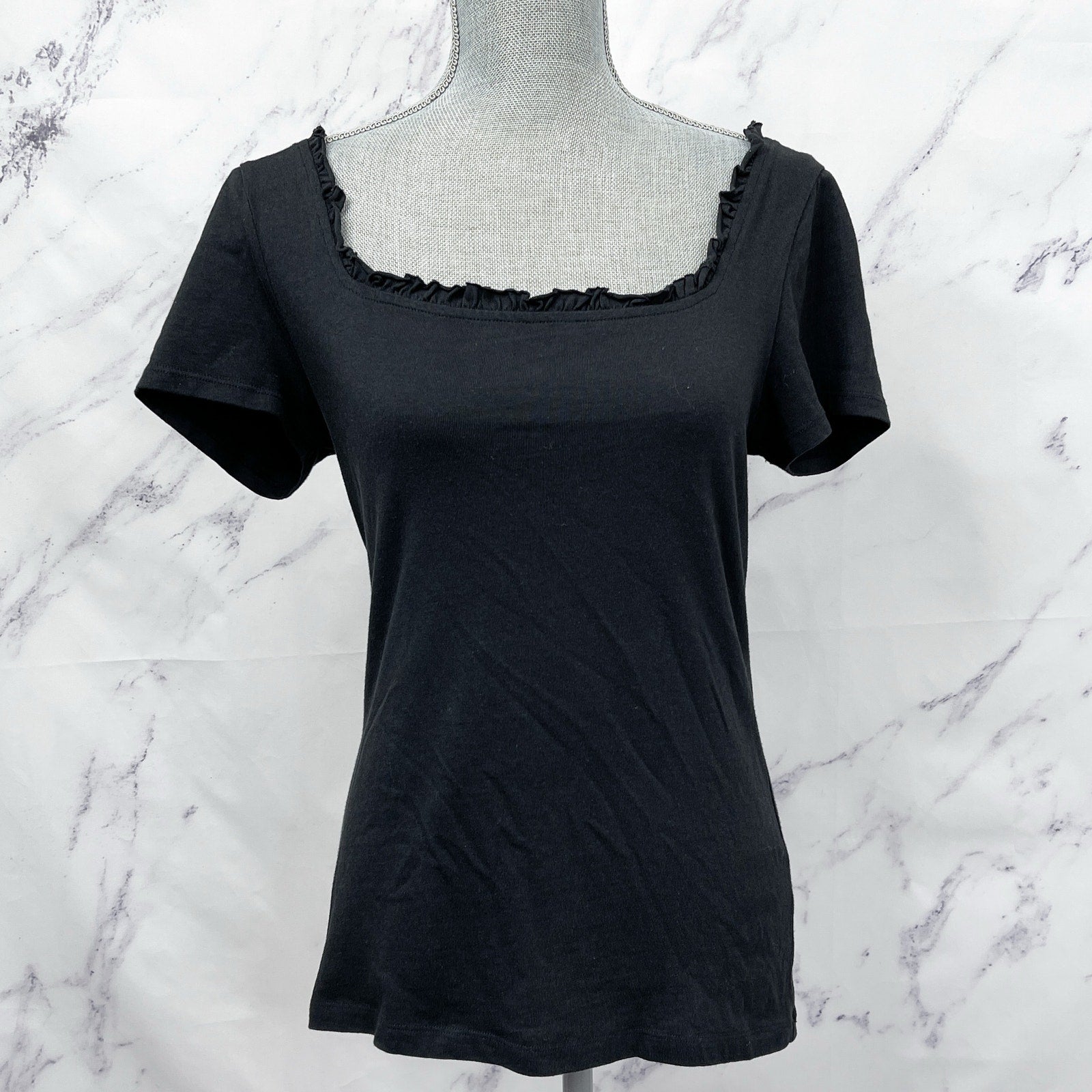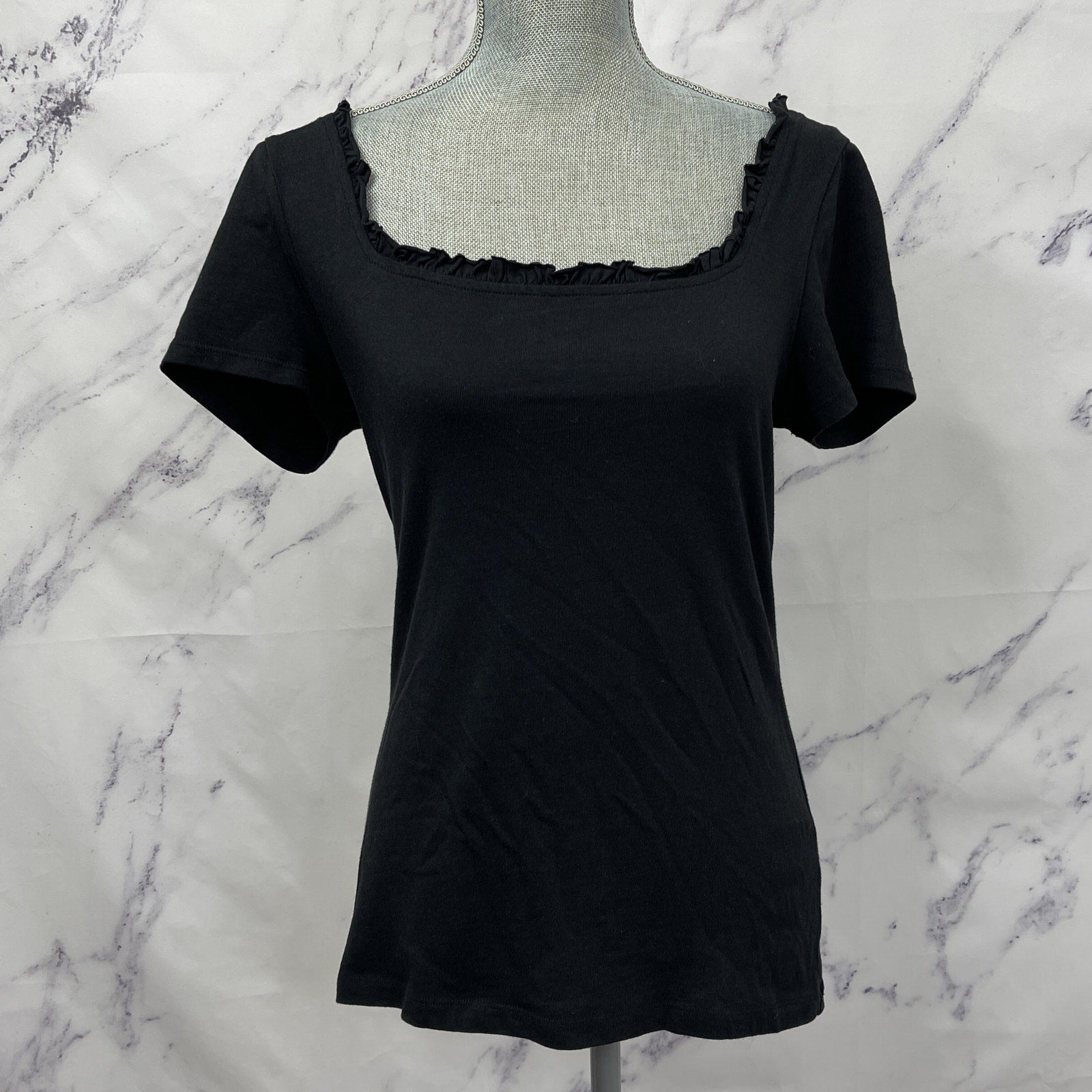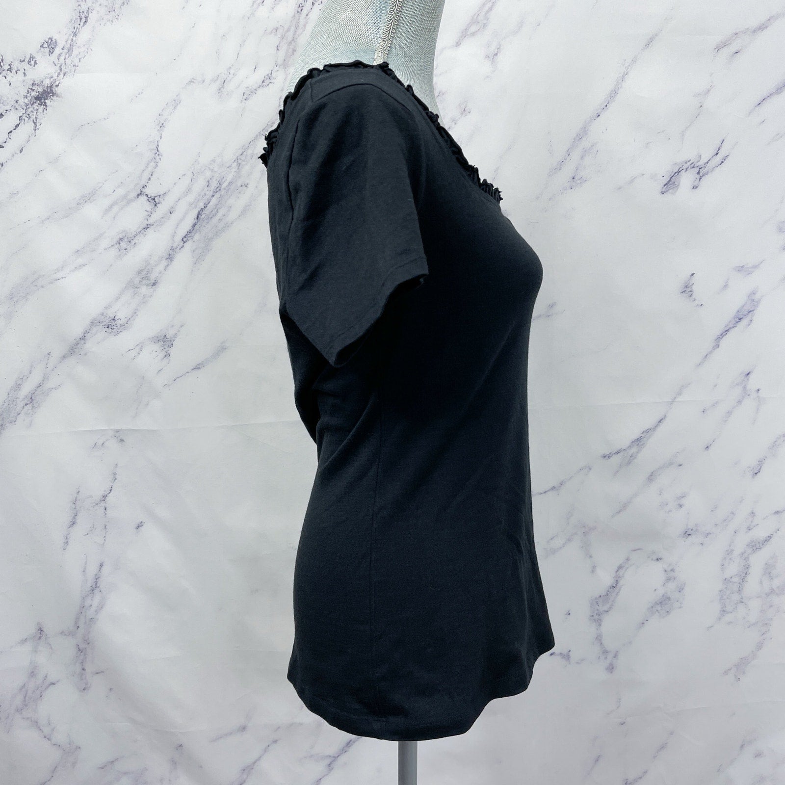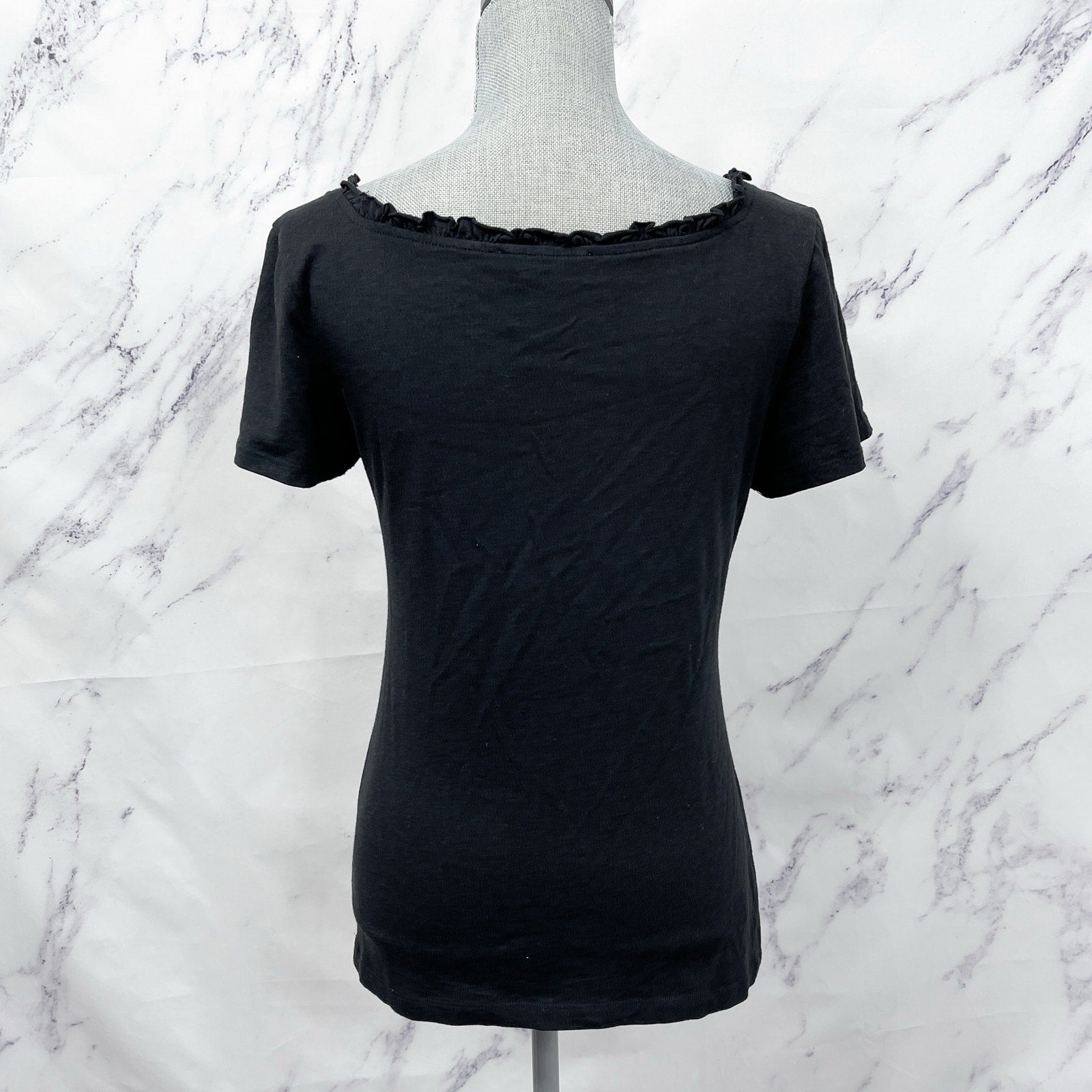 RP Rachel Parcell | Black Ruffle Neckline Short Sleeve Top | M
