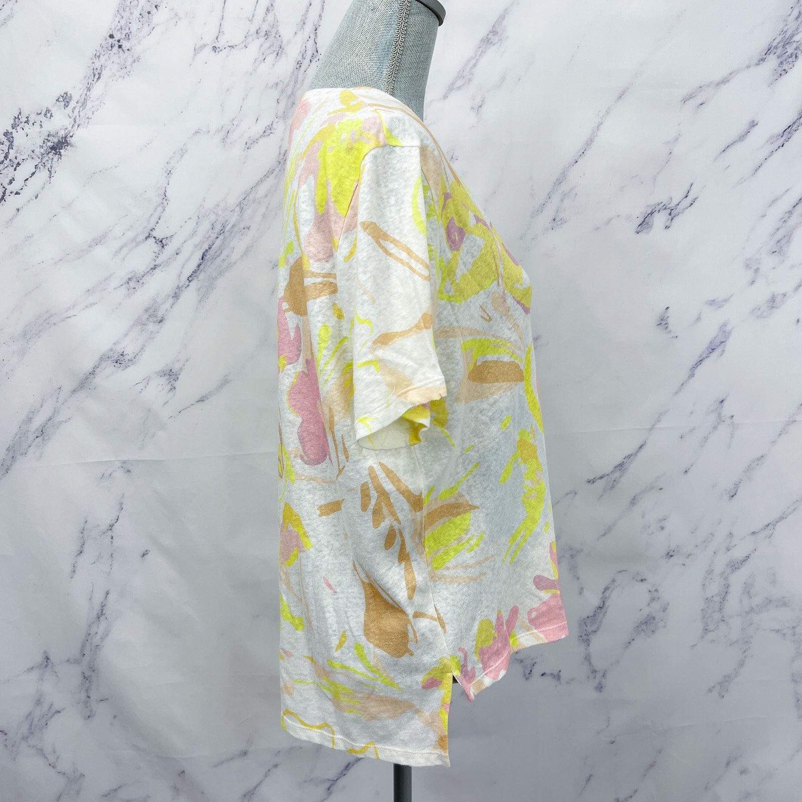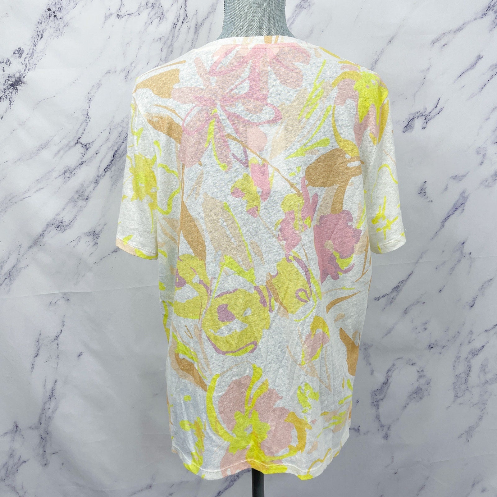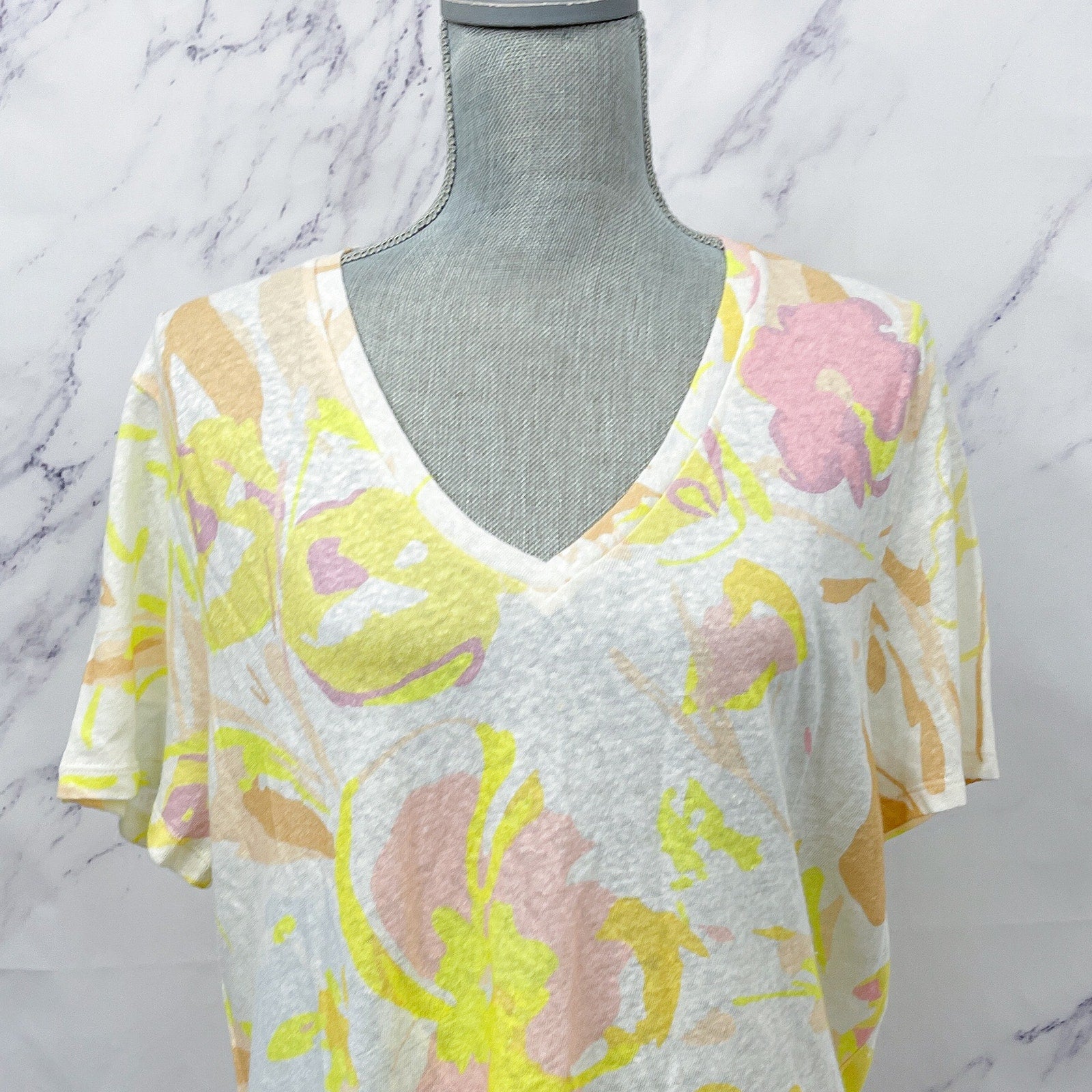 Ted Baker London | Ciana V-Neck Floral Linen/Cotton Blend T-Shirt | US 8 (S/M)