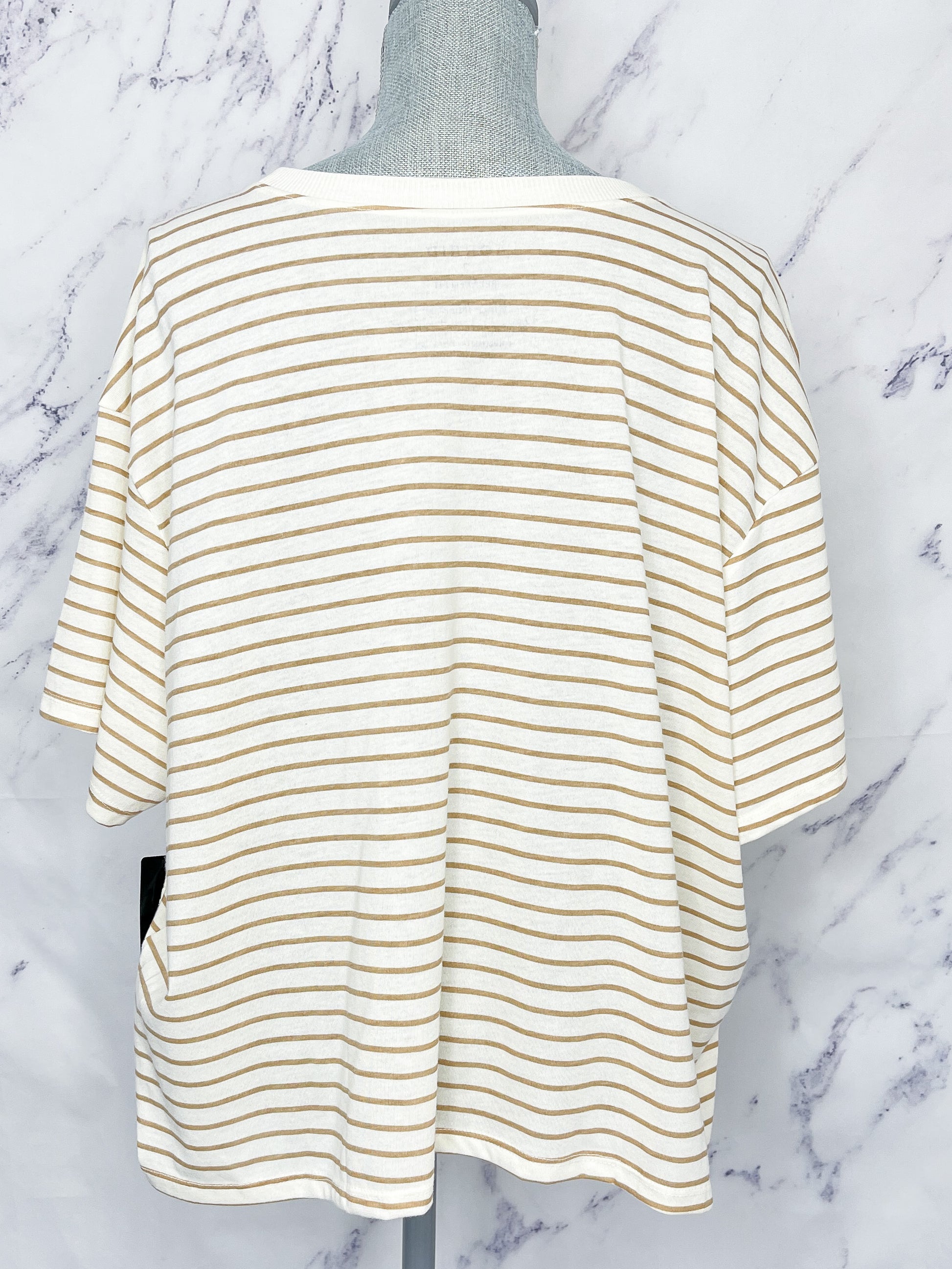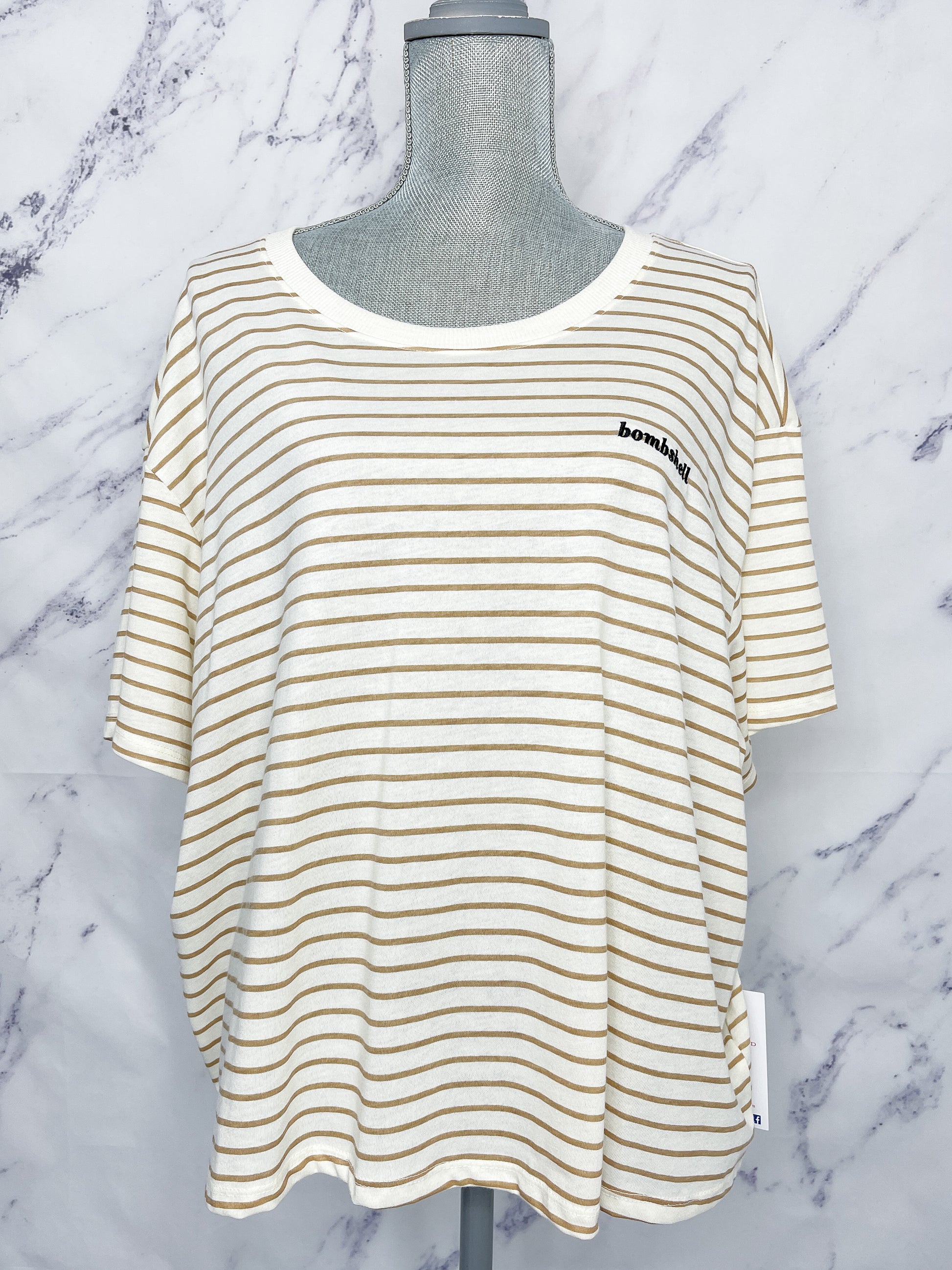 This Torrid Striped Shirt “Bombshell” Graphic has short drop sleeves and is available in size 2 (18/20), new with tags.
