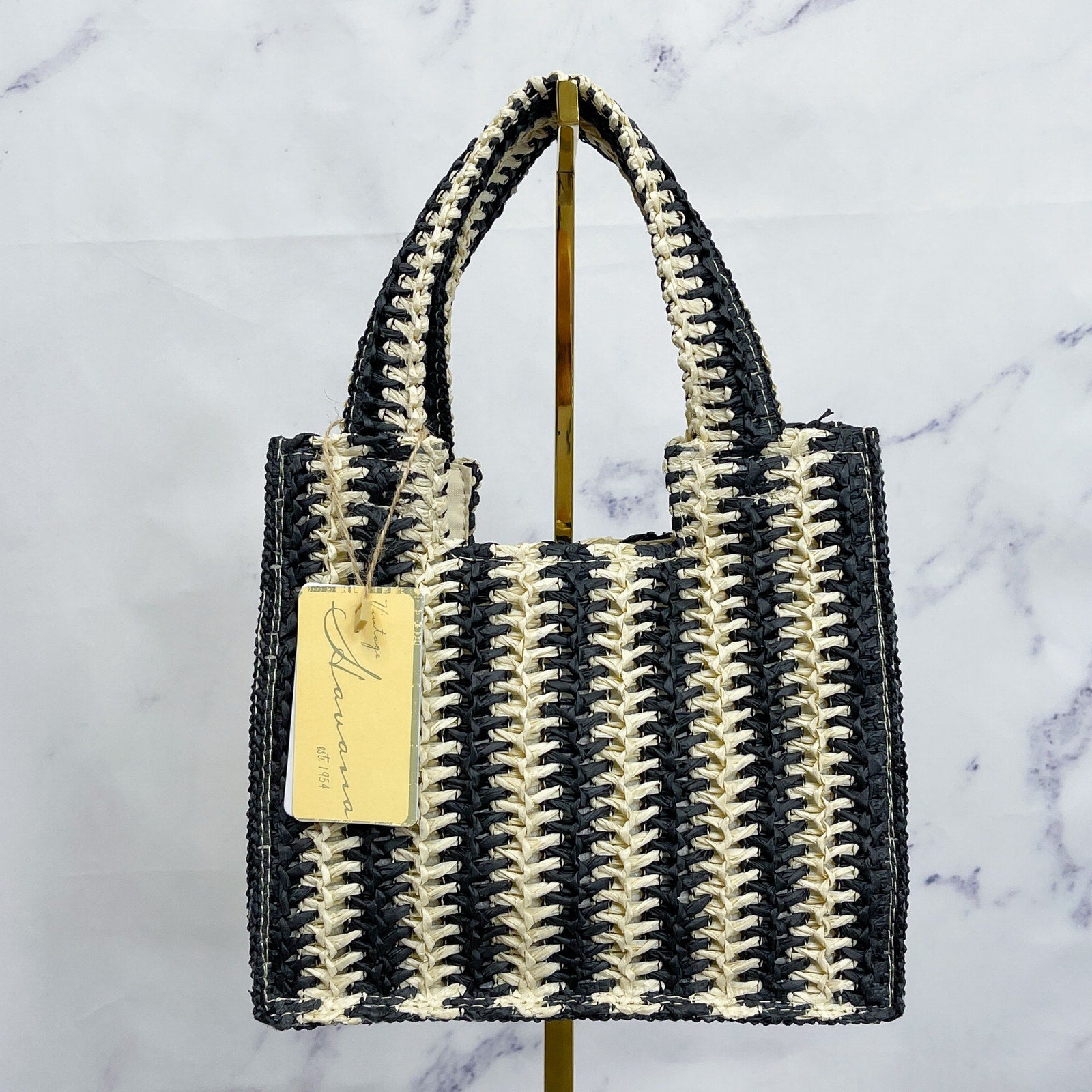 Vintage Havana | Inspire Crochet Striped Mini Tote | Black/Cream | NWT