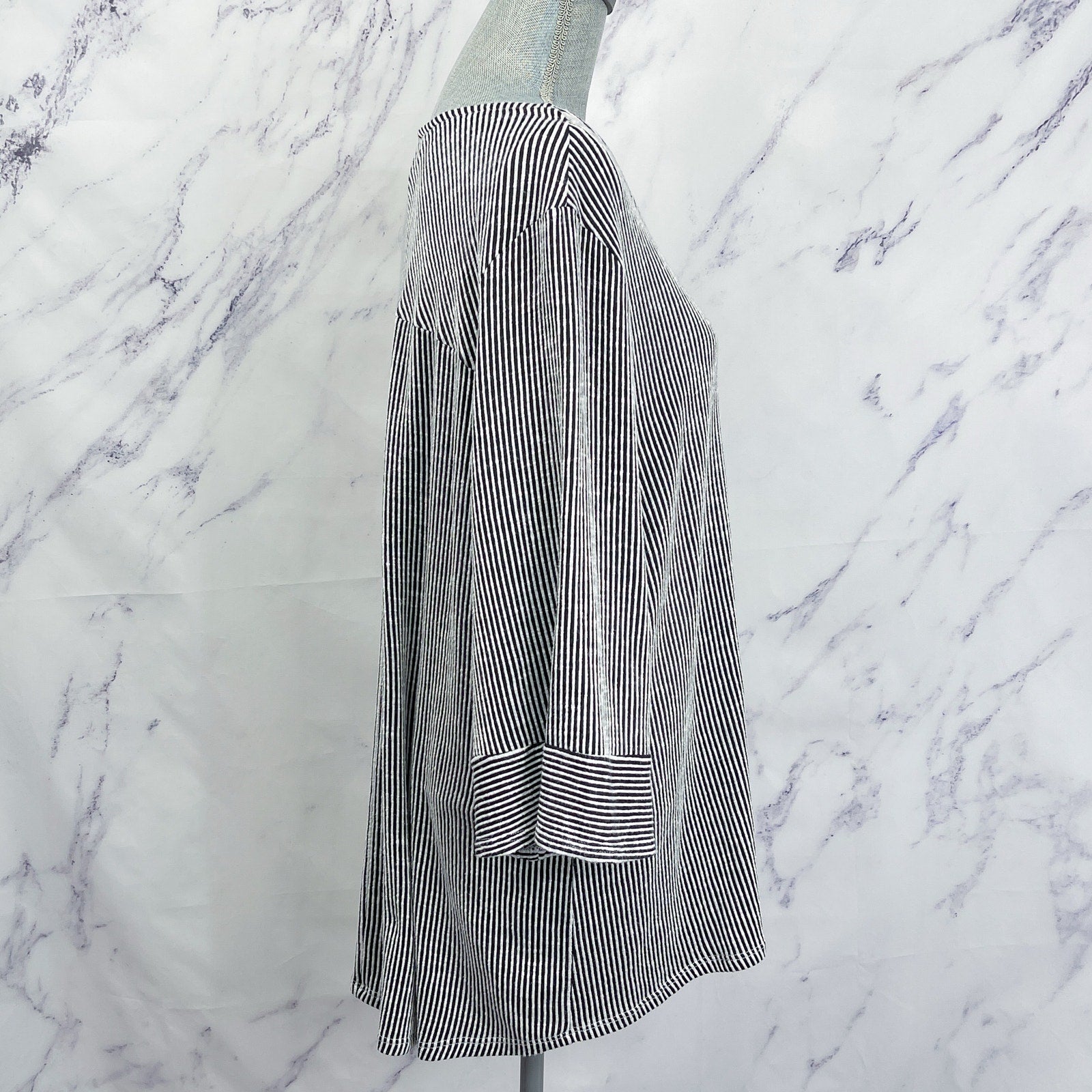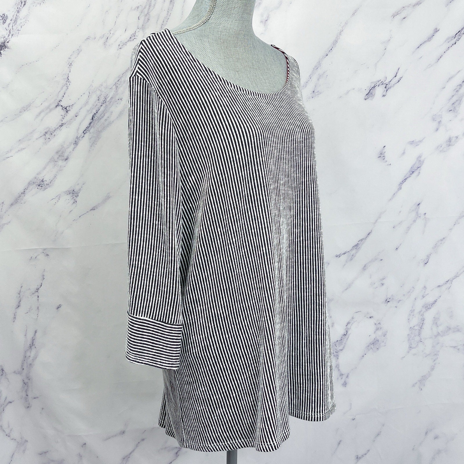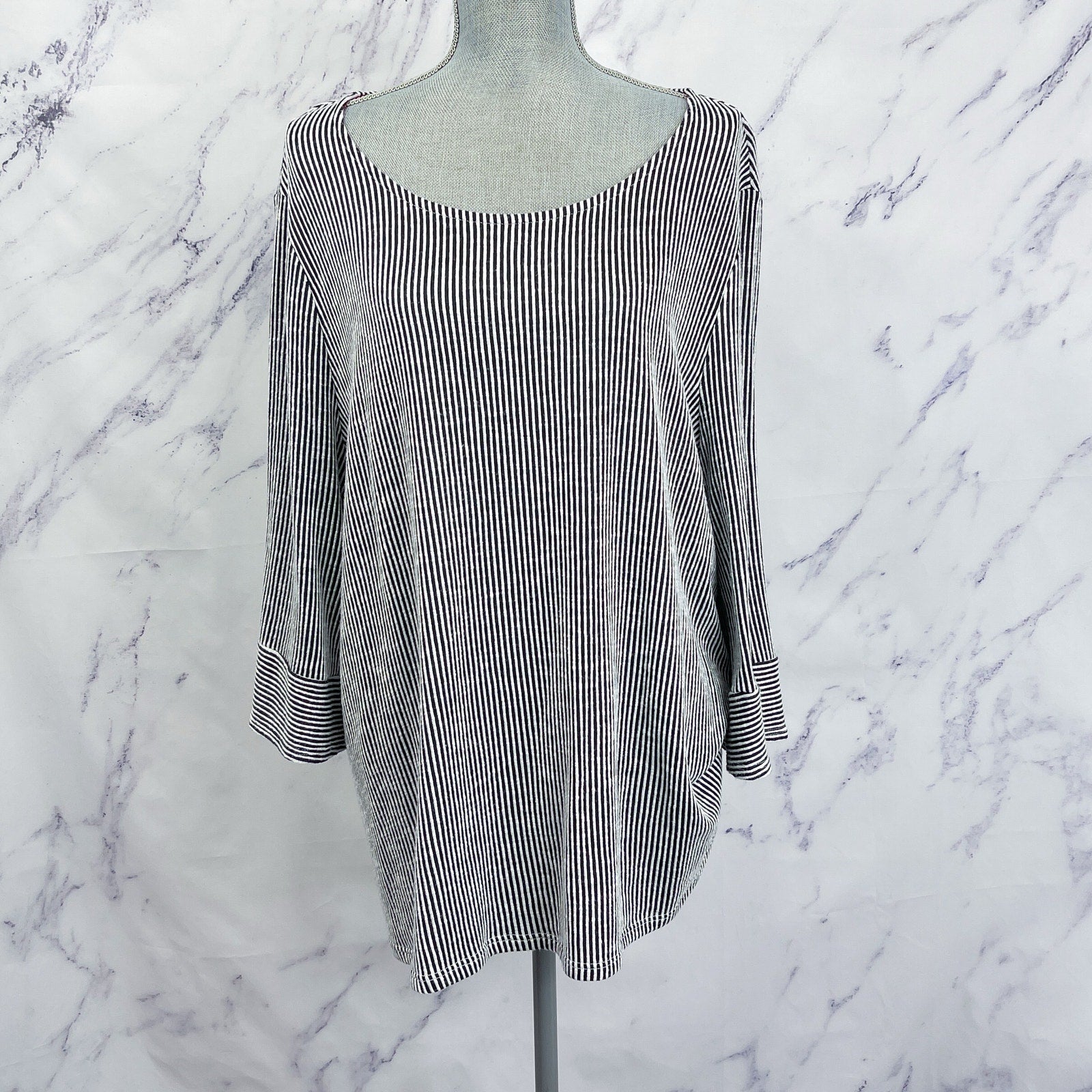 W5 | Black & White Striped 3/4 Sleeve Shirt | 3X